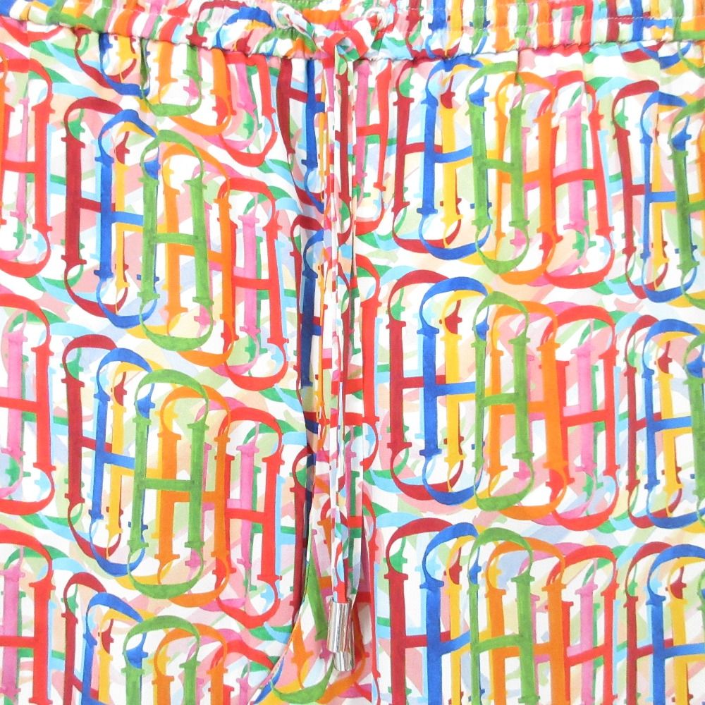 CAROLINA HERRERA キャロライナヘレラ CHマルチ ロゴプリント ブラウス ワイドパンツ セットアップ サイズL マルチカラー レディース 古着 WWW_NICORILABO_COM