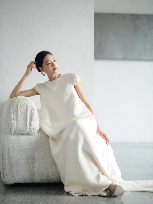 ウェディングドレス ロングドレス スレンダーライン 半袖 シンプル 韓国風 結婚式 ウエディングドレス ブライダル サテン 前撮り 挙式 二次会 花嫁 pai5a918995 WWW_NICORILABO_COM
