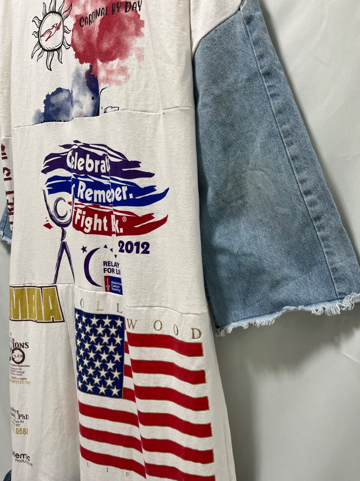 リメイク古着 remakeードッキングワンピース 長袖ロングワンピース ロゴT 白 デニム•フリルの検索結果