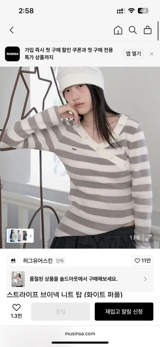 ハグユアースキン ストライプ Vネック ニット トップス 白 パープルの検索結果