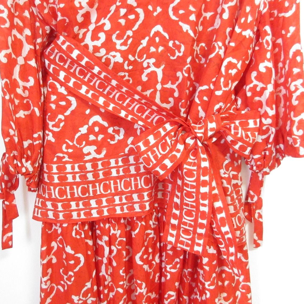 CAROLINA HERRERA キャロライナヘレラ 総柄 シルクブラウス ロングフ スカート セットアップ L オレンジ レディース 古着の検索結果