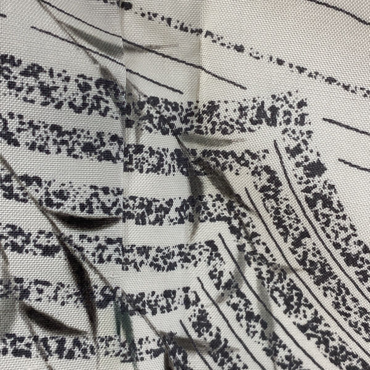 付下げ 身丈165cm 裄丈64cm M 袷 牛首紬地 落款 菱 幾何学模様 灰緑 正絹 名品
