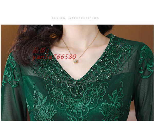 刺繍 パーティードレス レディース 総レース ワンピース ミモレ丈 グリーン 演奏会 ドレス 七分袖結婚式 二次会 ワンピース yan5a766580 WWW_NICORILABO_COM