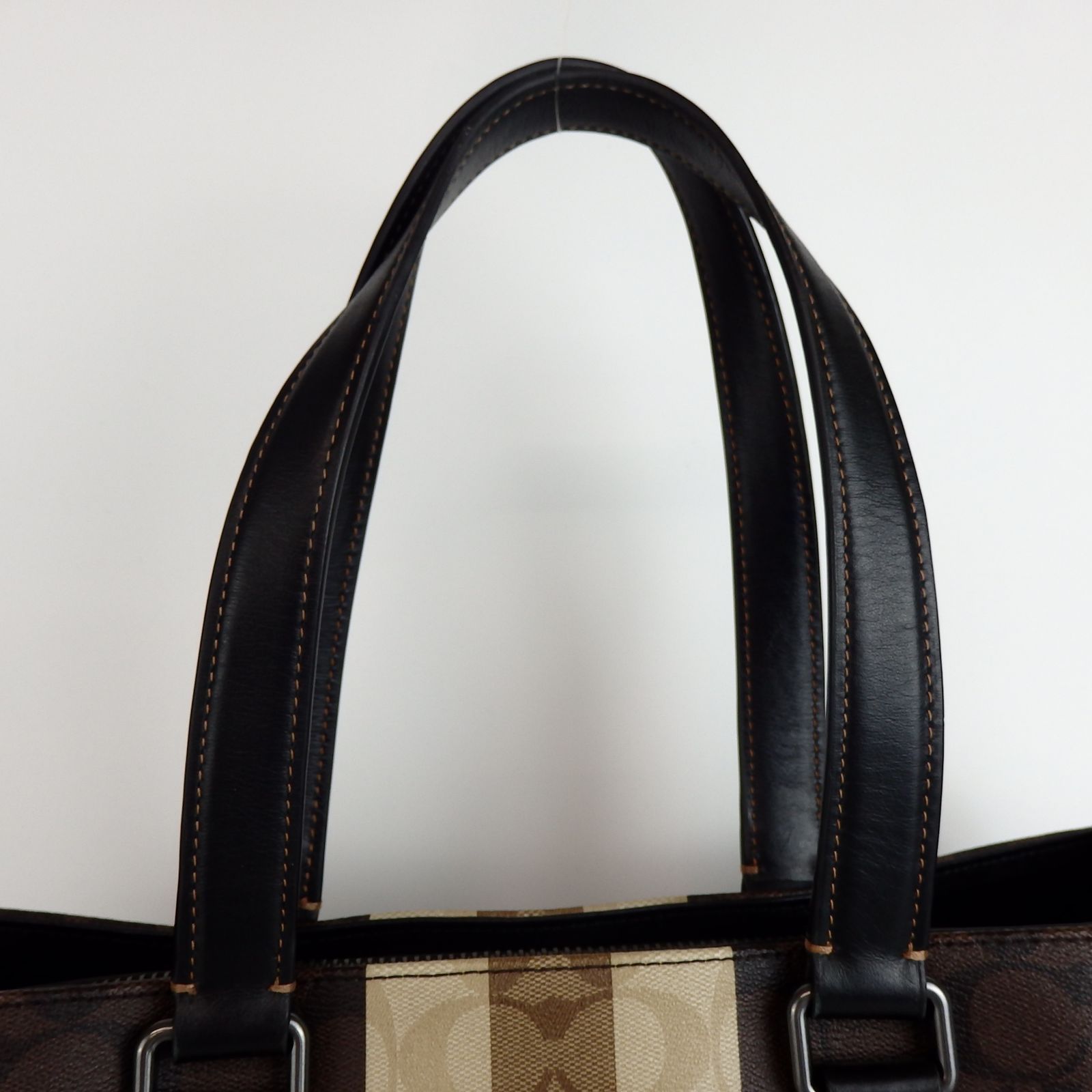 COACH コーチ シグネチャー ヘリテージストライプ トートバッグ ブラウン ホワイト 6707 レザー レディース 5-4 41710 WWW_NICORILABO_COM