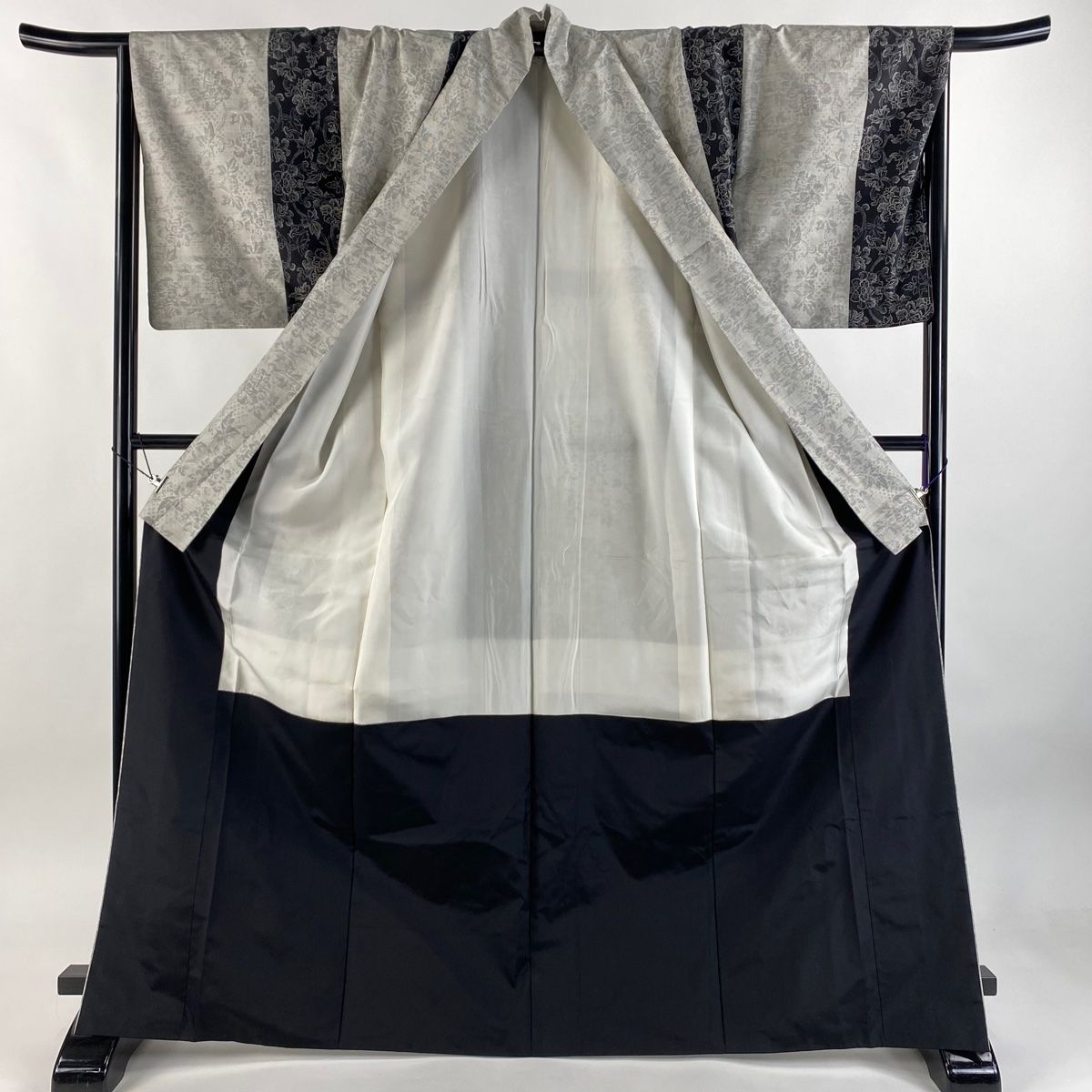紬 身丈170cm 裄丈67cm M 袷 花唐草 縦縞 灰色 正絹 秀品の検索結果