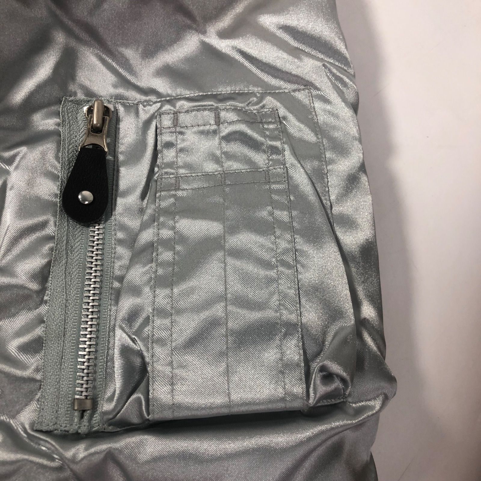 A1022-32-5 NISSIN 日清 ラ王 あしたのジョー ジョージャン MA-1 品 中綿ジャケット シルバー 品 ジップアップジャンパー フリーサイズ 博報堂 身幅64cm 肩幅50cm 着丈62cm WWW_NICORILABO_COM