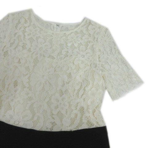 グレースクラス GRACE Class リバーレース切替ワンピース 2713 5042-0 ドッキング 半袖 タック ひざ丈 日本製 コットン混 ホワイト 白 ブラック 黒 36 WWW_NICORILABO_COM