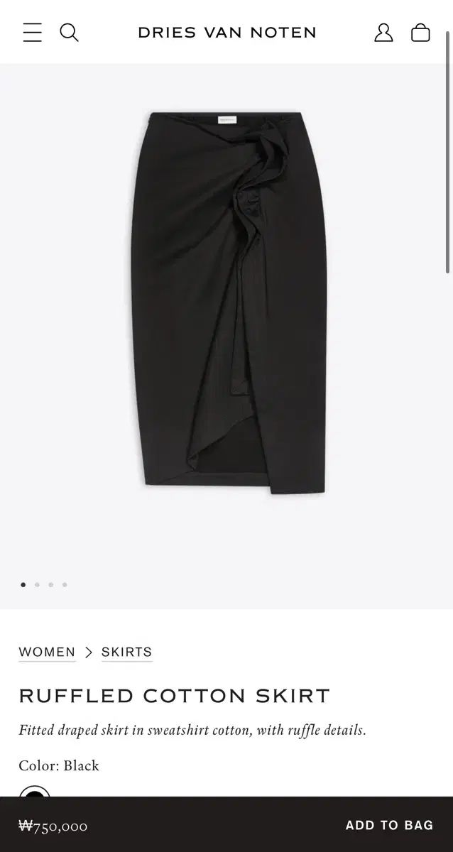 75万円 ドリス ヴァン ノッテン フリル アシメントリー ミディ スカートです。ユニークなダメージ フリンジとフリル ディテールが際立つ商品です。ブラック カラーなので、どんな服にもよく合います。