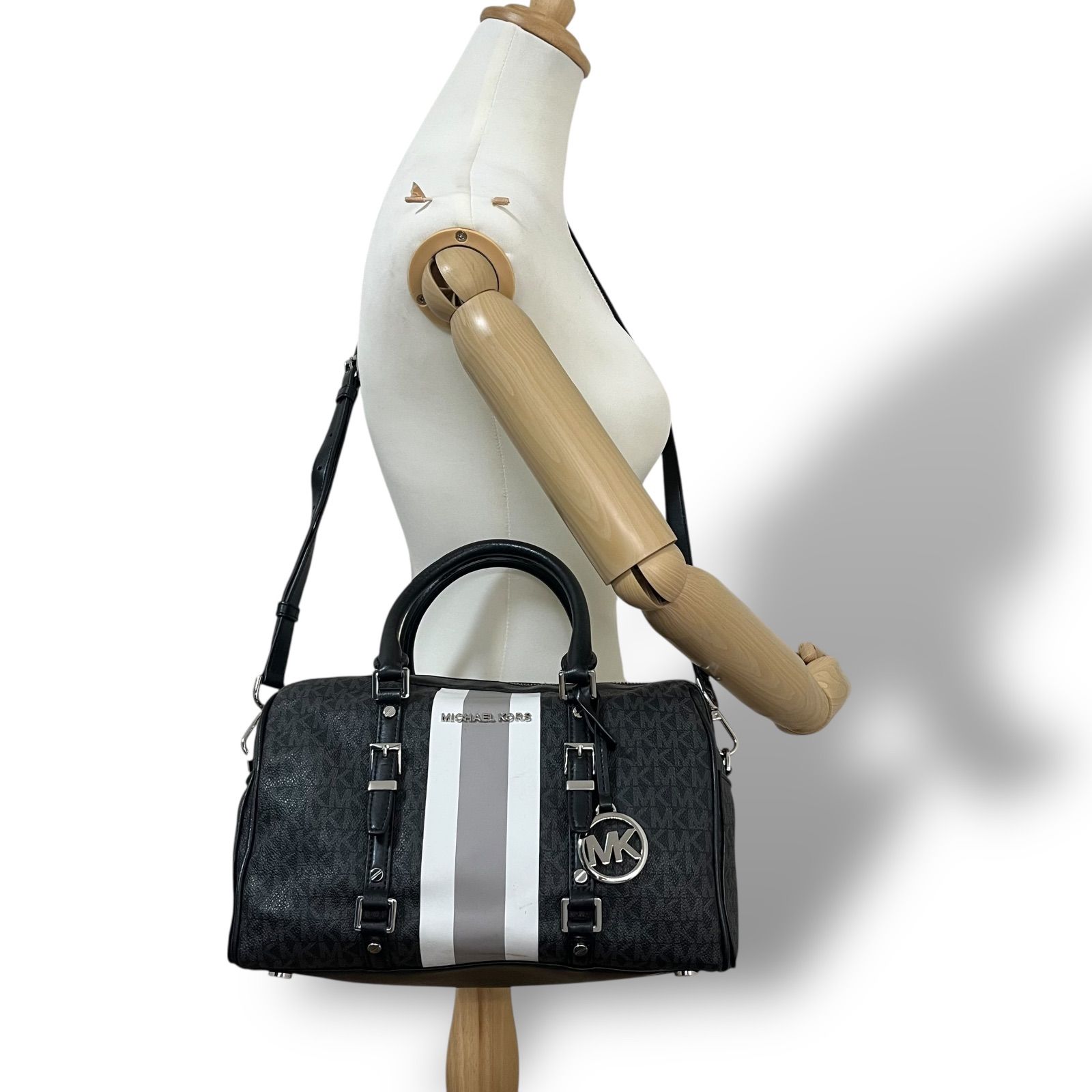 MICHAEL KORS マイケルコース ボストンバッグ レディース ブラック ダークグレー マルチ PVC レザー 手提げ斜め掛け 5107 WWW_NICORILABO_COM