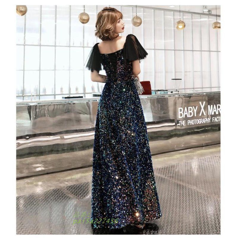 ドレス 大人 ピアノ 発表会 ロングドレス 大きいサイズ ロング 長袖 小さいサイズ 結婚式 演奏会 母親 キラキラ 演奏会用ドレス 袖付き yan5a726788