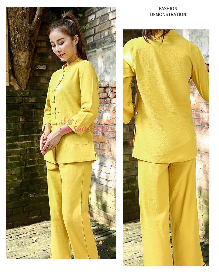 太 拳服 ヨガ服 カンフー服 チャイナ服 レディス 女性 綿麻 送料無料 スーツ 9分丈立ち襟 セットアップ am5a013535 WWW_NICORILABO_COM