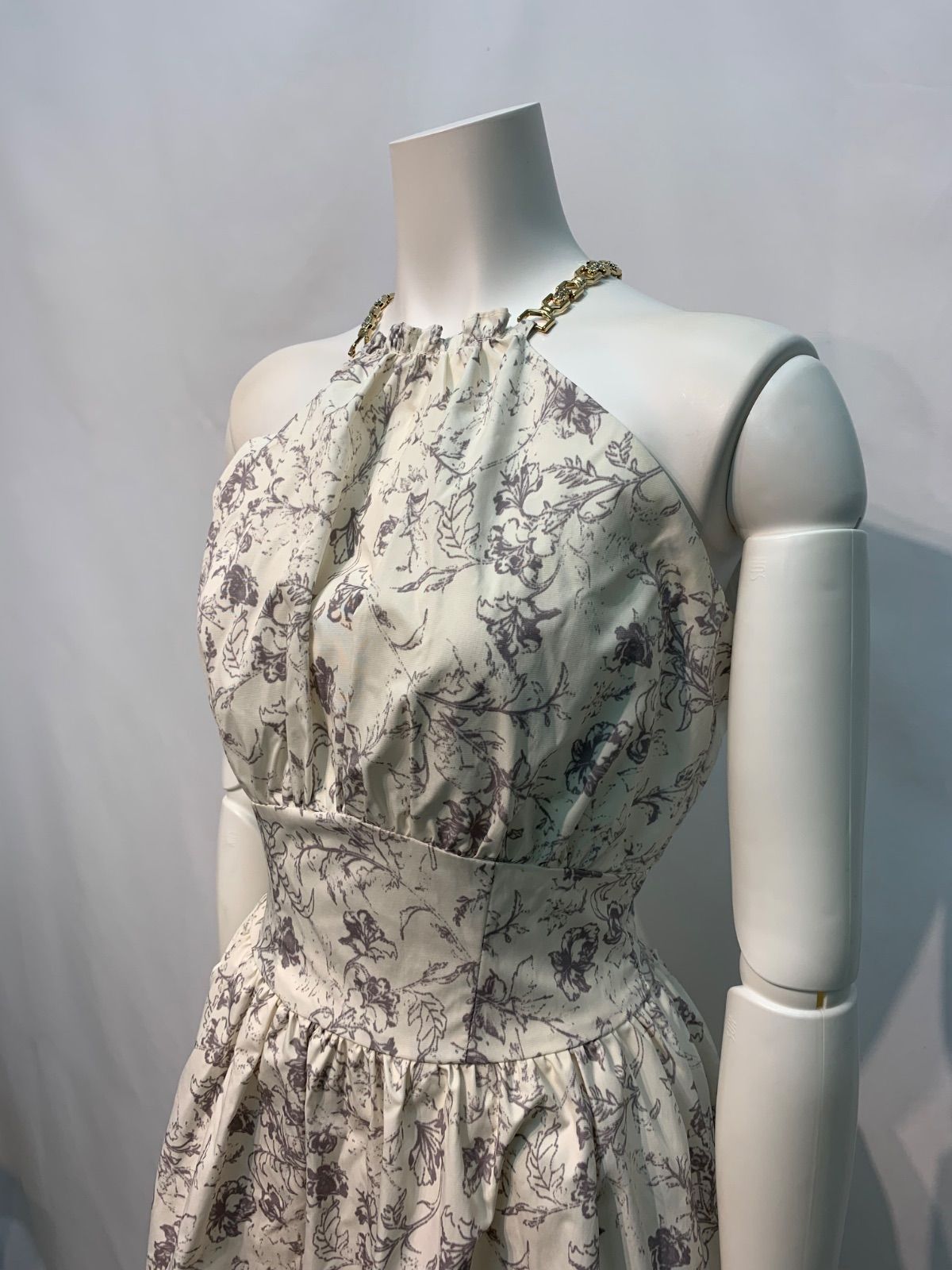 1533 DEA by ROBE de FLEURS ディアバイローブドフルール キャバクラ ドレス 花柄プリントツイル ロングドレス ゴールドチェーン ストーン ホルターネック キャバドレス S WWW_NICORILABO_COM