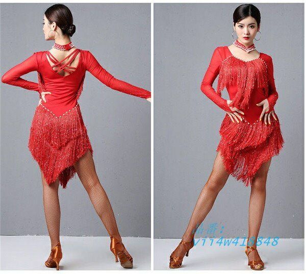 ラテン ドレス 長袖 ダンス 衣装 演技服 演出 赤 2XL コンクール XL ワルツ ステージ 青 チャチャチャ 練習着 黒 M フリンジ L ワンピース vii4w418848 WWW_NICORILABO_COM