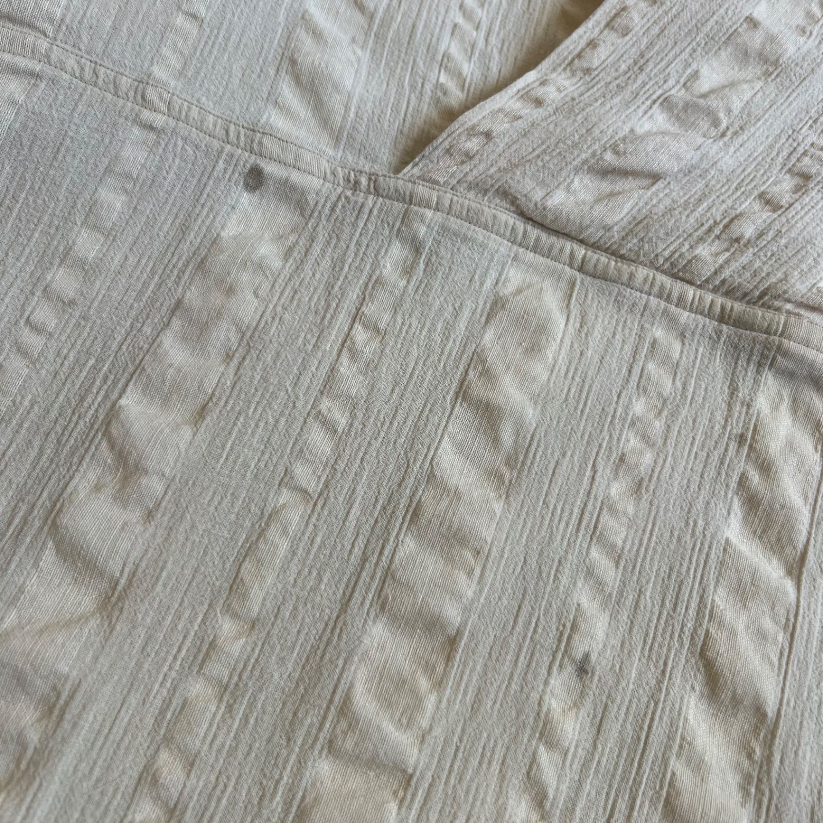 80s ISSEY MIYAKE イッセイミヤケ アーカイブ ヴィンテージ コットンリネン シアサッカー ノーカラーシャツ ベージュ Sサイズ WWW_NICORILABO_COM