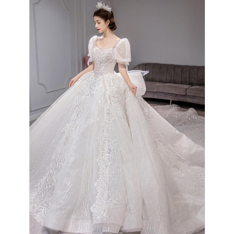ウェディングドレス ウエディングドレス パフスリーブ 二次会 結婚式 前撮り ブライダル ロングドレス 花嫁 プリンセスドレス プリンセスライン 半袖 ゴージャス WWW_NICORILABO_COM