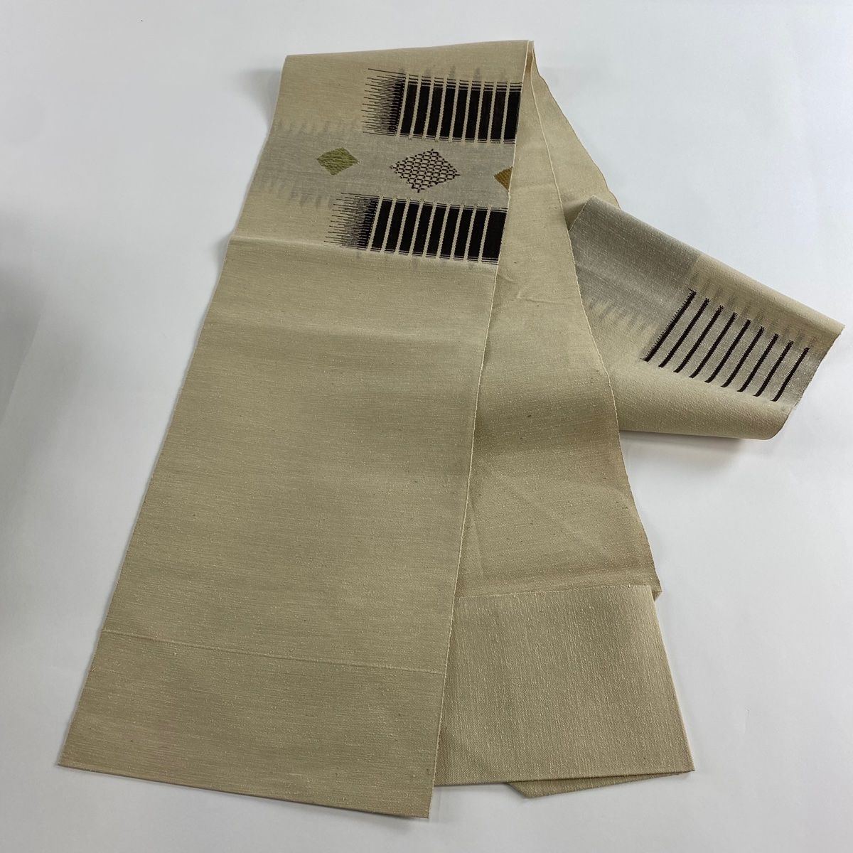 名古屋帯 秀品 八寸名古屋帯 松葉仕立て 菱 縞 ベージュ 正絹の検索結果