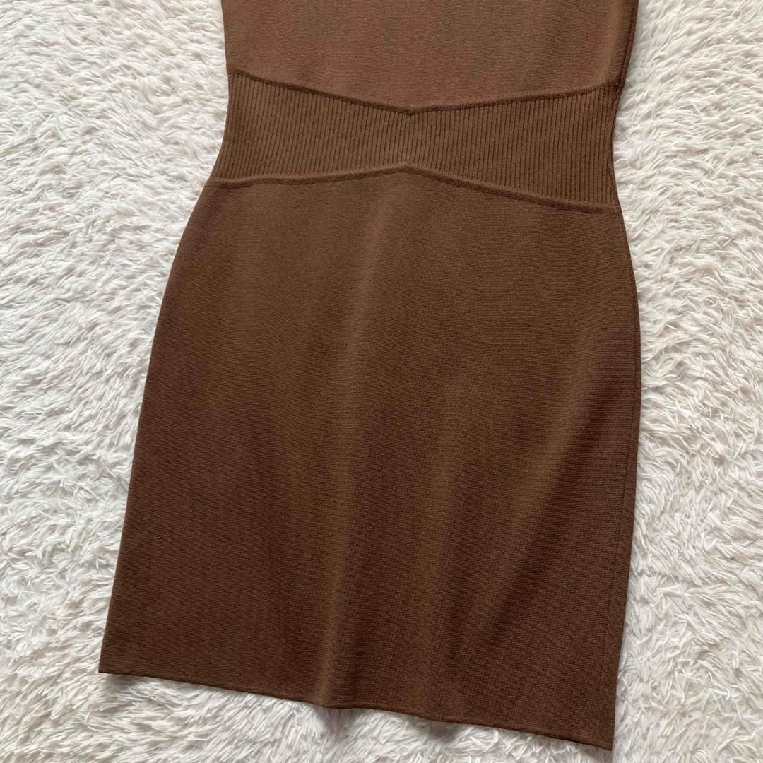 FOXEY BOUTIQUE フォクシーブティック ニットワンピース ノースリーブ ひざ丈 ウエストリブ 日本製 ブラウン 茶色 40サイズ WWW_NICORILABO_COM
