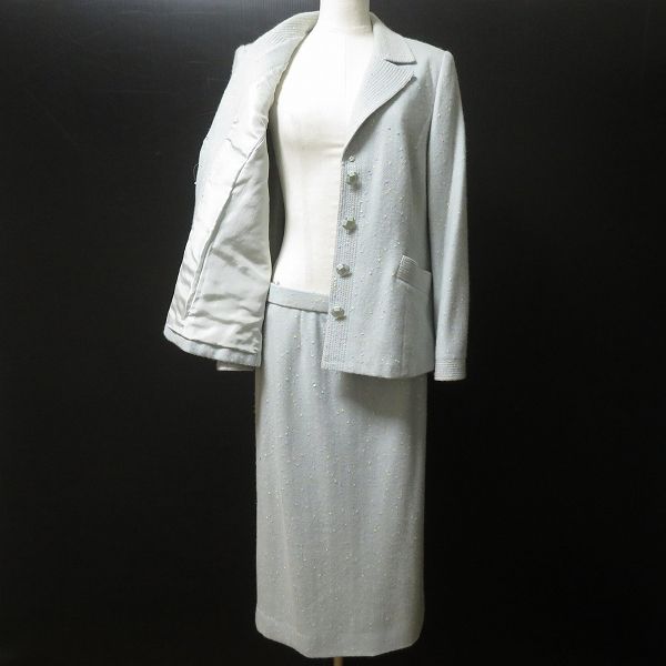 wnc スズキノリオ Norio Suzuki スカートスーツ セットアップ 水色 マルチ ステッチ ドット オートクチュール レディース 965649 WWW_NICORILABO_COM