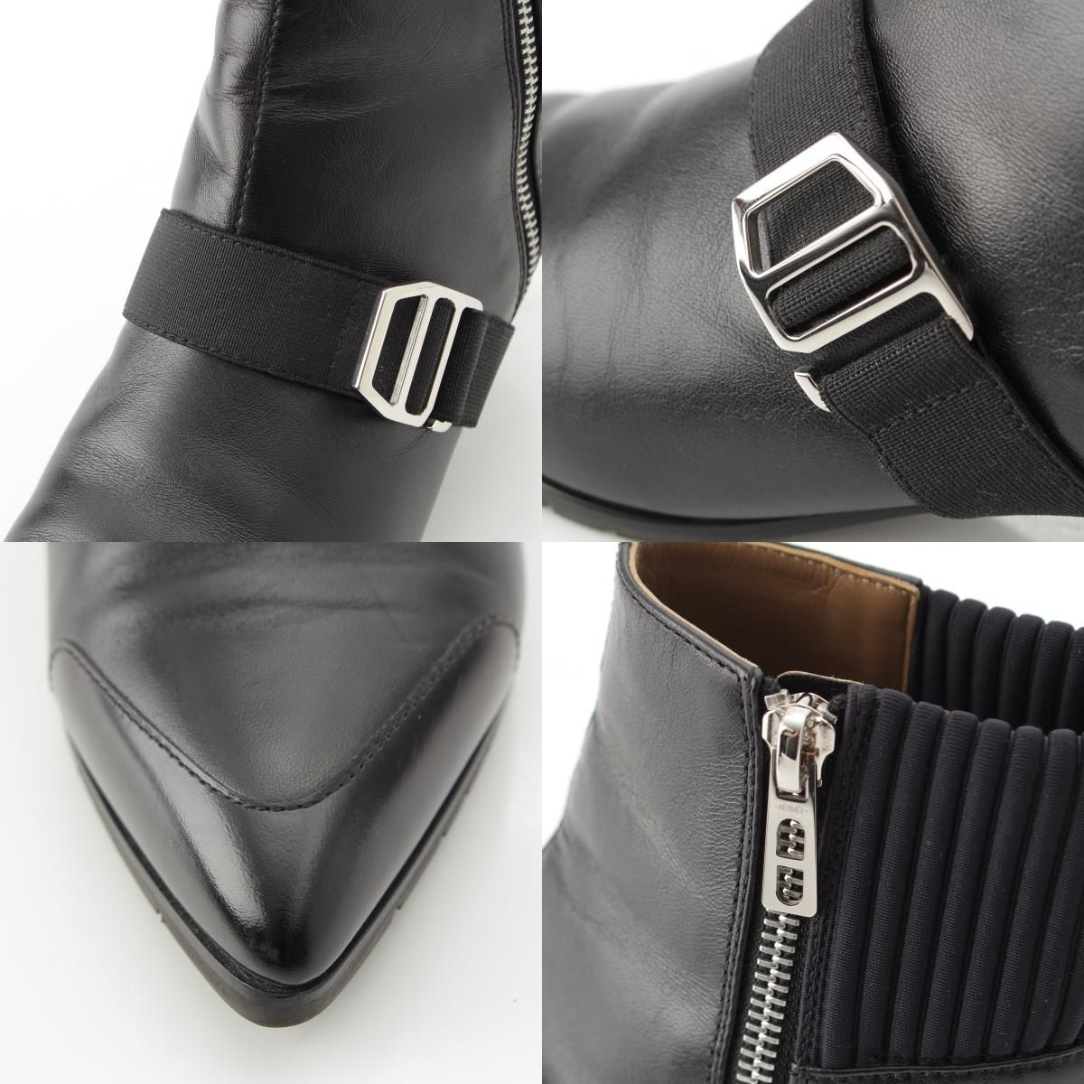 エルメス レザー ベルト付き ニット切替 ポインテッドトゥ サイドジップ ショート ブーツ M10516 ブラック 35 1|2 WWW_NICORILABO_COM
