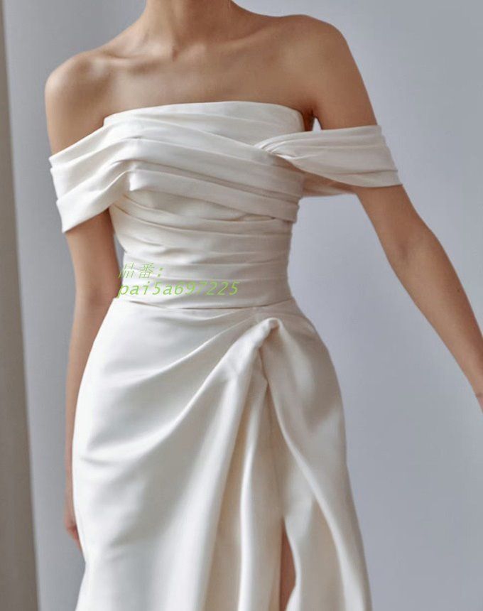 ワンショルダー ウェディングドレス 大きいサイズ 3L 4L 小さいサイズ ウェディングドレス 前撮り フォトウェディング 二次会 シンプル セクシー オフショルダー pai5a697225 WWW_NICORILABO_COM