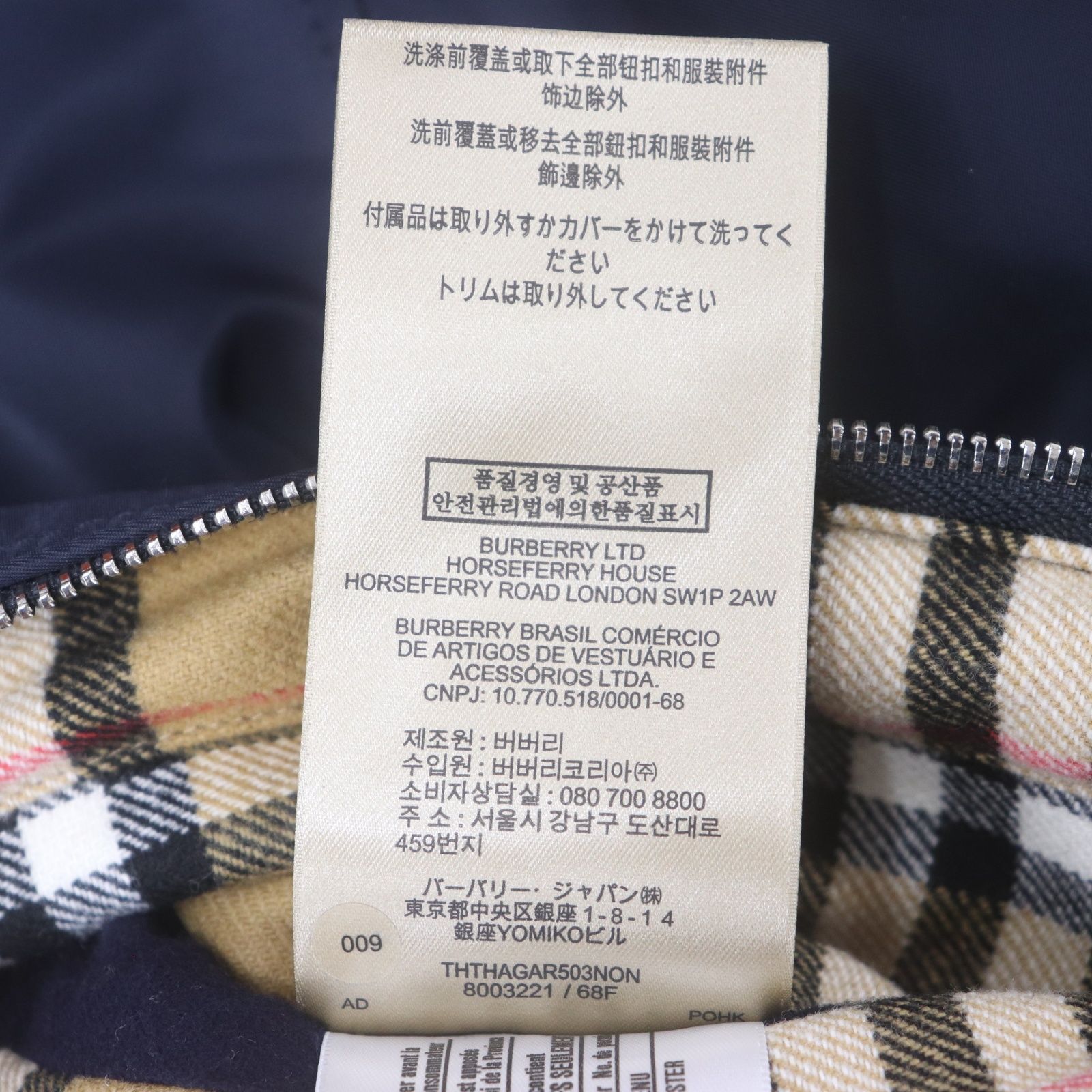 ITA8H7B93BIM BURBERRY バーバリー MA-1 ボンバージャケット ブルゾン ネイビー サイズ44 チェック レディース アウター WWW_NICORILABO_COM