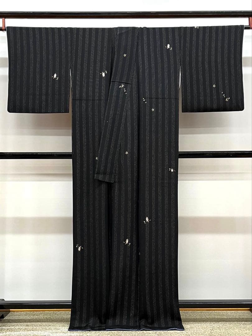 小紋 梟 刺繍 銀通し 飛び柄 正絹 黒地 ガード加工済の検索結果