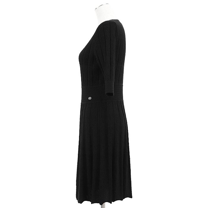 CHANEL シャネル ワンピース P59823 リブニット アルパカ × ウール シグネチャー ロゴ COCOマーク チャーム フ ハーフスリーブ プルオーバー ドレス レディース サイズ 36 ブラック 黒 イタリア製の検索結果