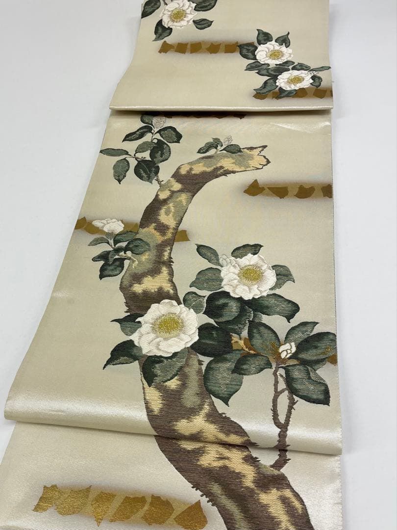 真珠箔 浅山織物 西陣織 袋帯 ♥品 白椿 本金箔 正絹 六通 WWW_NICORILABO_COM
