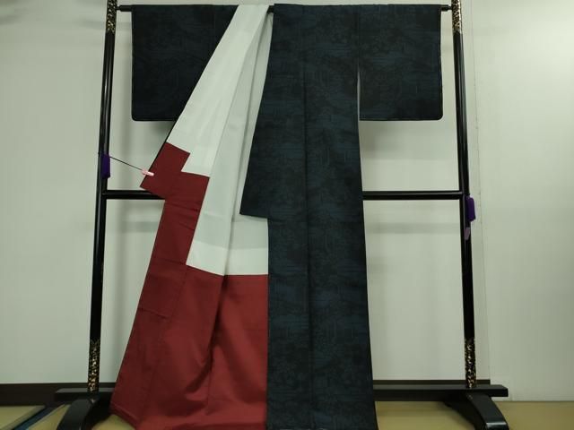 平和屋着物 上 本場琉球紬 黒紅色地 DZAA9991kh5