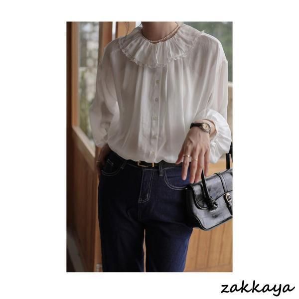 長袖ブラウス ♥ 春 レディース ギャザーブラウス オーバーサイズ とろみシャツ レトロ フリルブラウス 体型カバー 透けトップス 長袖 yunban515 WWW_NICORILABO_COM