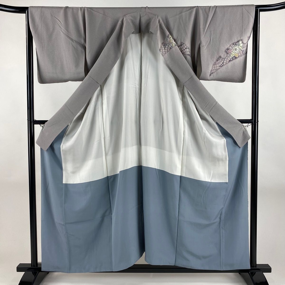 付下げ 身丈166cm 裄丈65cm M 単衣 藤 紬地 青灰色 正絹 秀品