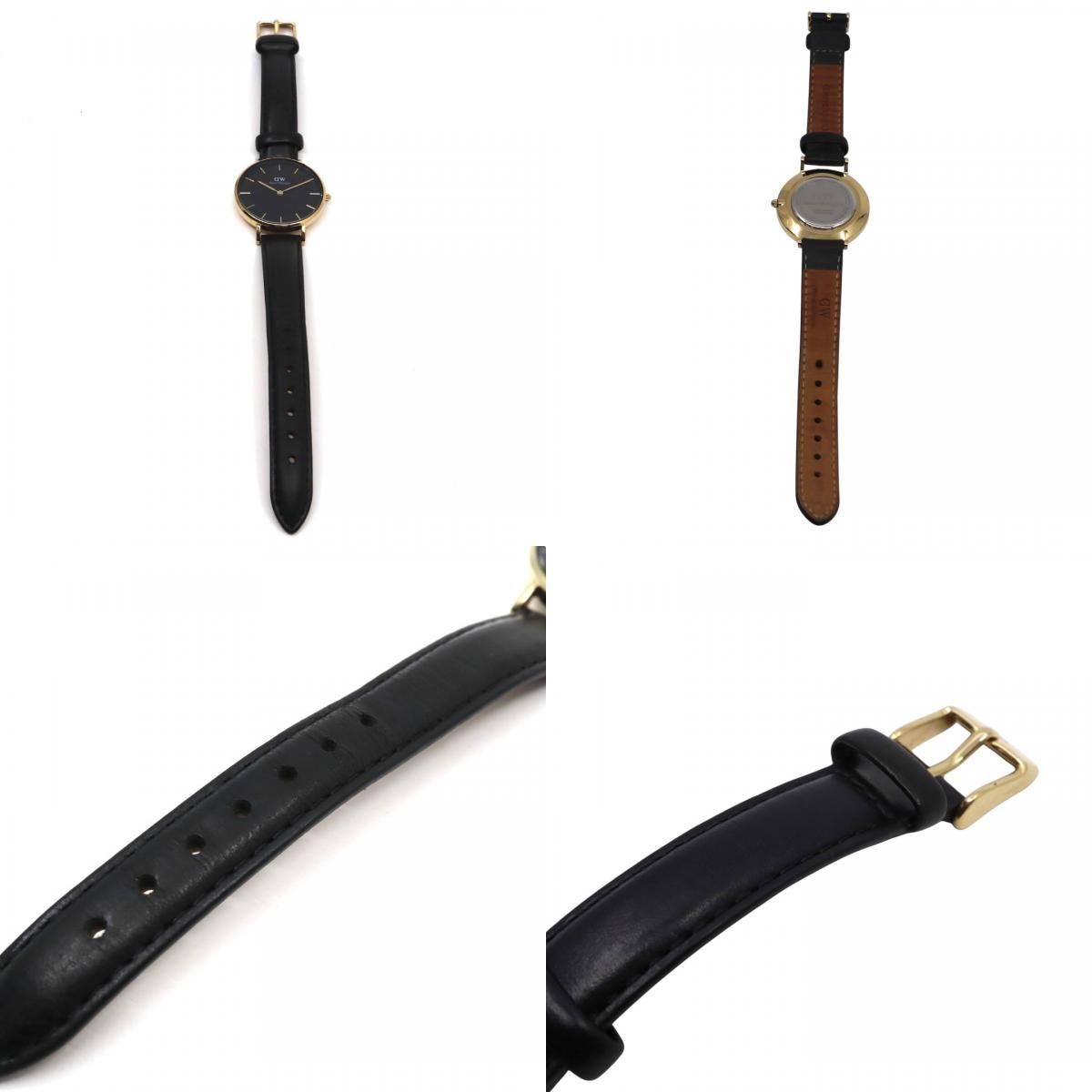 電池交換済 ダニエルウェリントン DW Petite 腕時計 レディース K32GB06 クオーツ アナログ ラウンド ブラック文字盤 ゴールドケース レザーベルト クラシック エレガント ミニマルデザイン クリーニング済 稼働品 G2 WWW_NICORILABO_COM