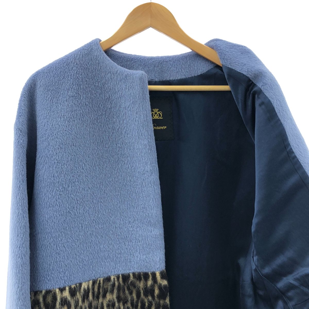 Drawer | ドゥロワー | ファー付き レオパード ノーカラー ショートコート | 総裏地 | ブルー|ブラウン | レディース WWW_NICORILABO_COM