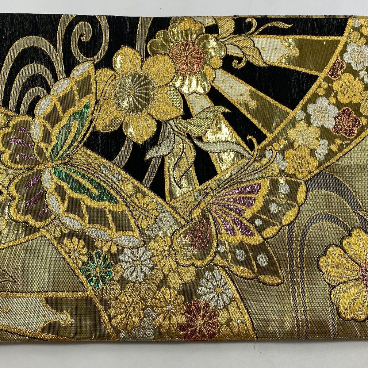 袋帯 秀品 振袖向き 蝶 桜 金糸 箔 金色 六通 正絹 WWW_NICORILABO_COM