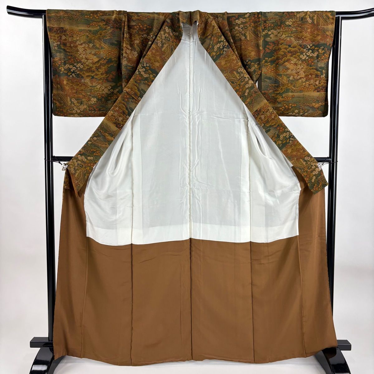 小紋 身丈165cm 裄丈67cm M 袷 樽本伊勢蔵 落款 建物 樹木 山吹茶色 正絹 名品の検索結果