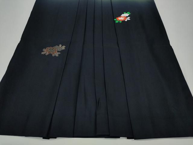 ブランド袴 紅一点 刺繍 椿 黒色 ポリエステル 紐下91cm