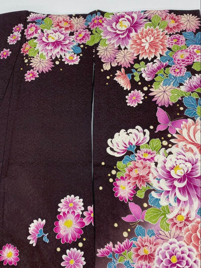 振袖 身丈157cm 裄丈67cm M 袷 御所車 牡丹 金糸 金銀彩 濃紫 正絹 秀品