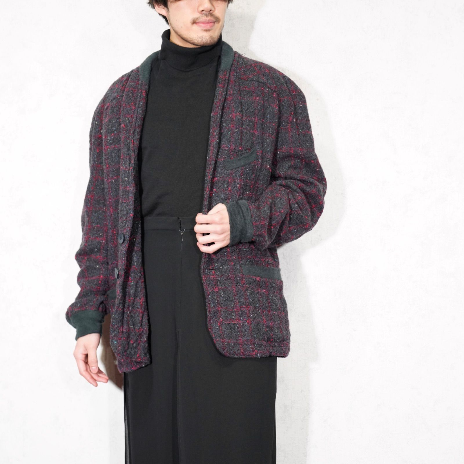 • JACKET ヨーロッパ古着チェック柄デザインツイードテーラードジャケット
