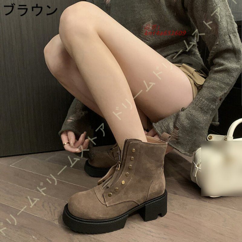 ブーツ ショートブーツ フロントジップ 厚底ソール レディース プラットフォーム アンクル丈 厚底靴 フロントジッパー ジップアップ 牛革スエード 衣装 レザー kni4a651609 WWW_NICORILABO_COM