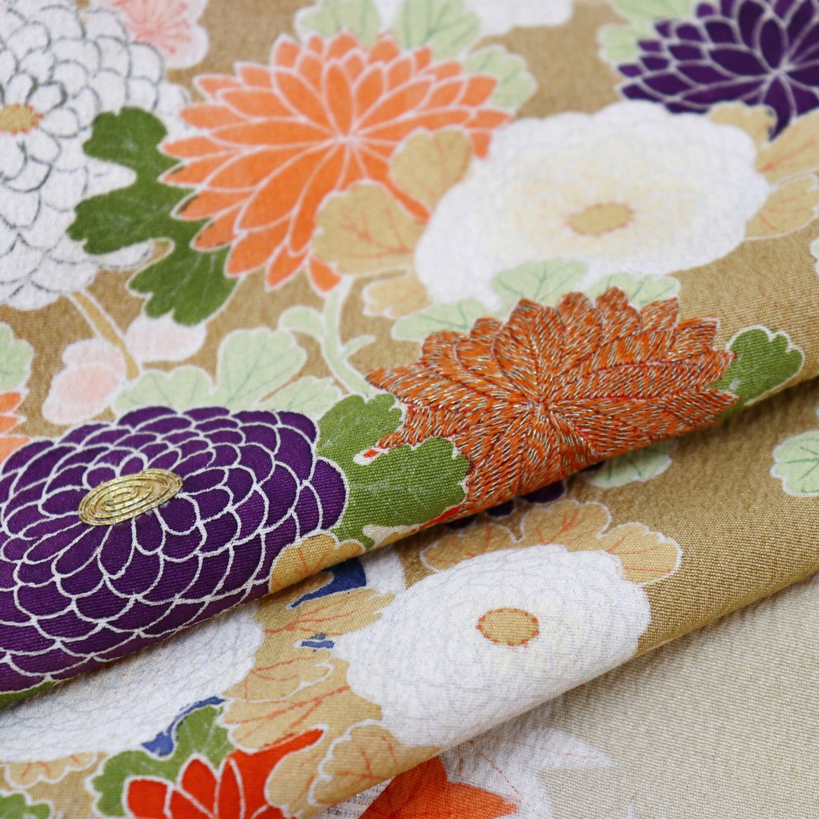 訪問着 身丈168.5cm 裄丈65.5cm M 袷 辻が花 金彩 ぼかし 黄土色 正絹 名品