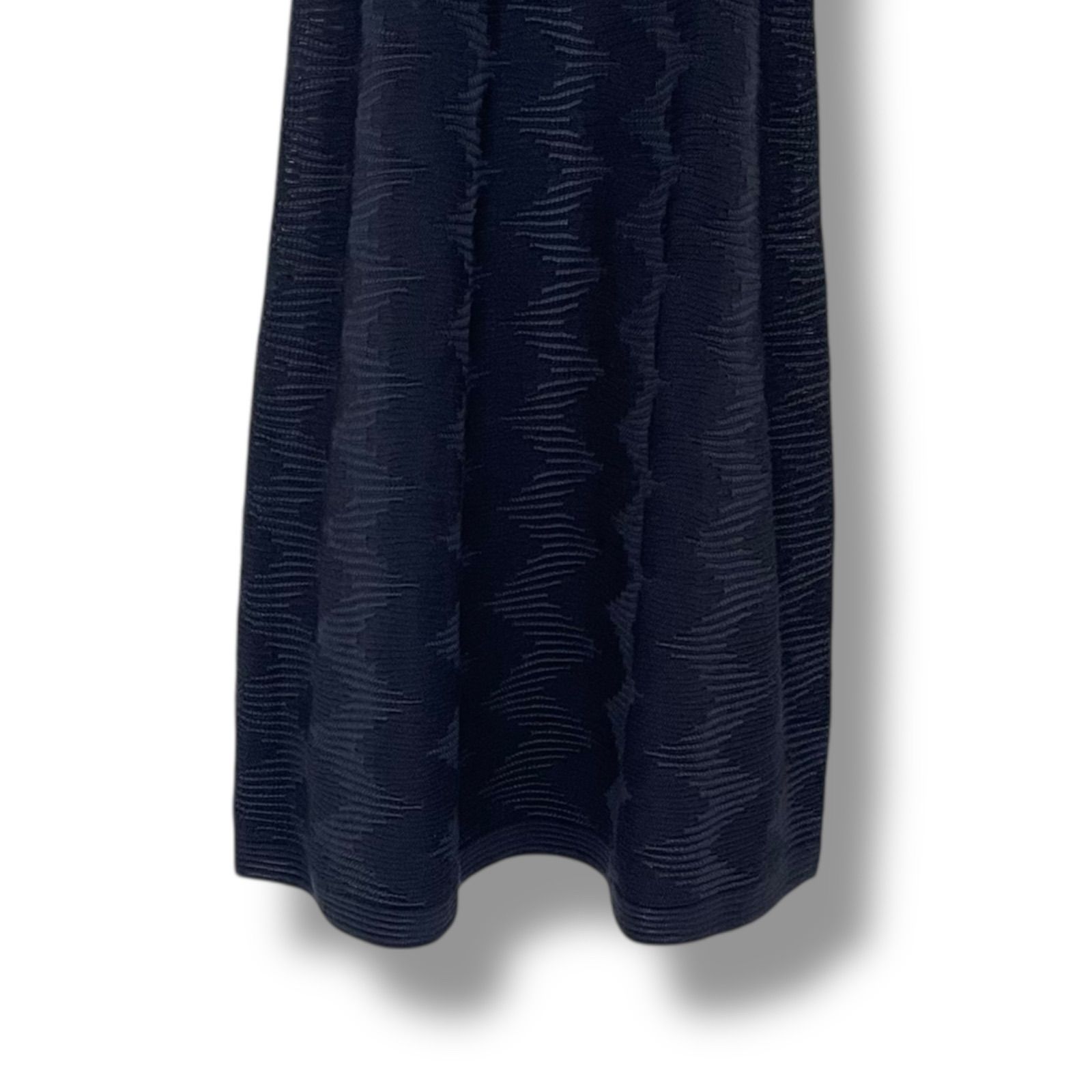 MISSONI ミッソーニ ネイビー リブニット ワンピース 半袖 毛54% レーヨン46% ルーマニア製 38 Sサイズ相当 レディース 上質 エレガント おしゃれ 0000484OC WWW_NICORILABO_COM