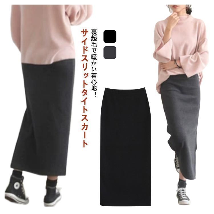裏起毛スカート タイトカート ロングスカート 裏フリース あったか 秋冬 防寒 暖か 暖 ロング マキシ ミモレ スカート スリット カジュアル 無地 ウエストゴム ボトムス 大きいサイズ Iライン sam505 WWW_NICORILABO_COM