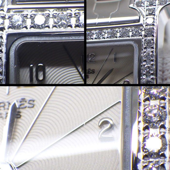エルメス HERMES 腕時計 Hウォッチ HH1.230 ダイヤベゼル スクエア アイボリーギョーシェ文字盤 SS クオーツアナログ WWW_NICORILABO_COM