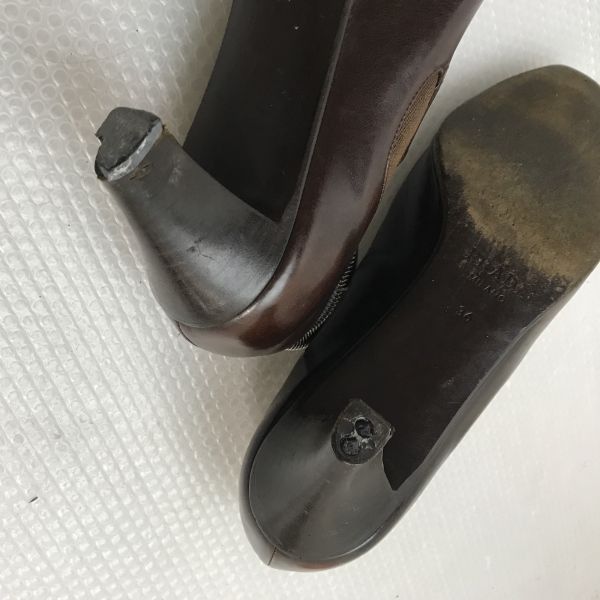PRADA|プラダ 本革|サイドゴア|ブーティー 36|23.0|ダークブラウン ハイヒール|ポインテッドトゥ|boots|pumps|Shoes|high heels◆bB-142の検索結果
