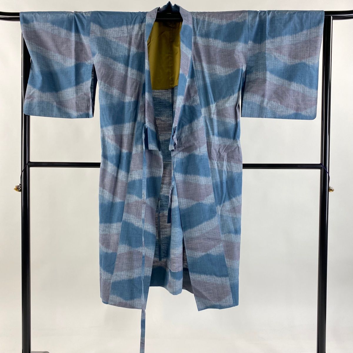 道中着 身丈124.5cm 裄丈66.5cm M 和装コート 着物衿 紬地 縦縞 幾何学 青灰色 正絹 秀品の検索結果