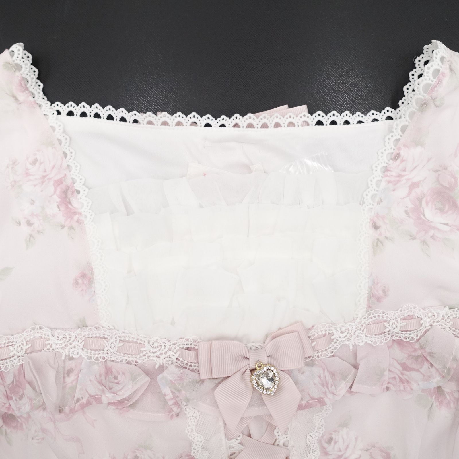 LIZ LISA ローズリボンシフォンワンピース 0 | Fサイズ ピンク 110 リボン ハートチャーム 姫系 花柄 リズリサ タグ付き ♥ WWW_NICORILABO_COM