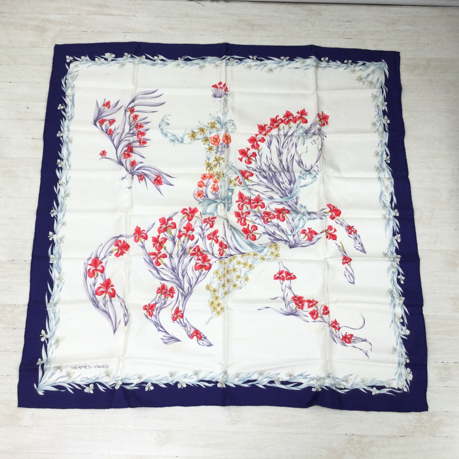 1410 HERMES エルメス H.d Origny 花咲く馬 カレ90 シルク スカーフ き レディースの検索結果