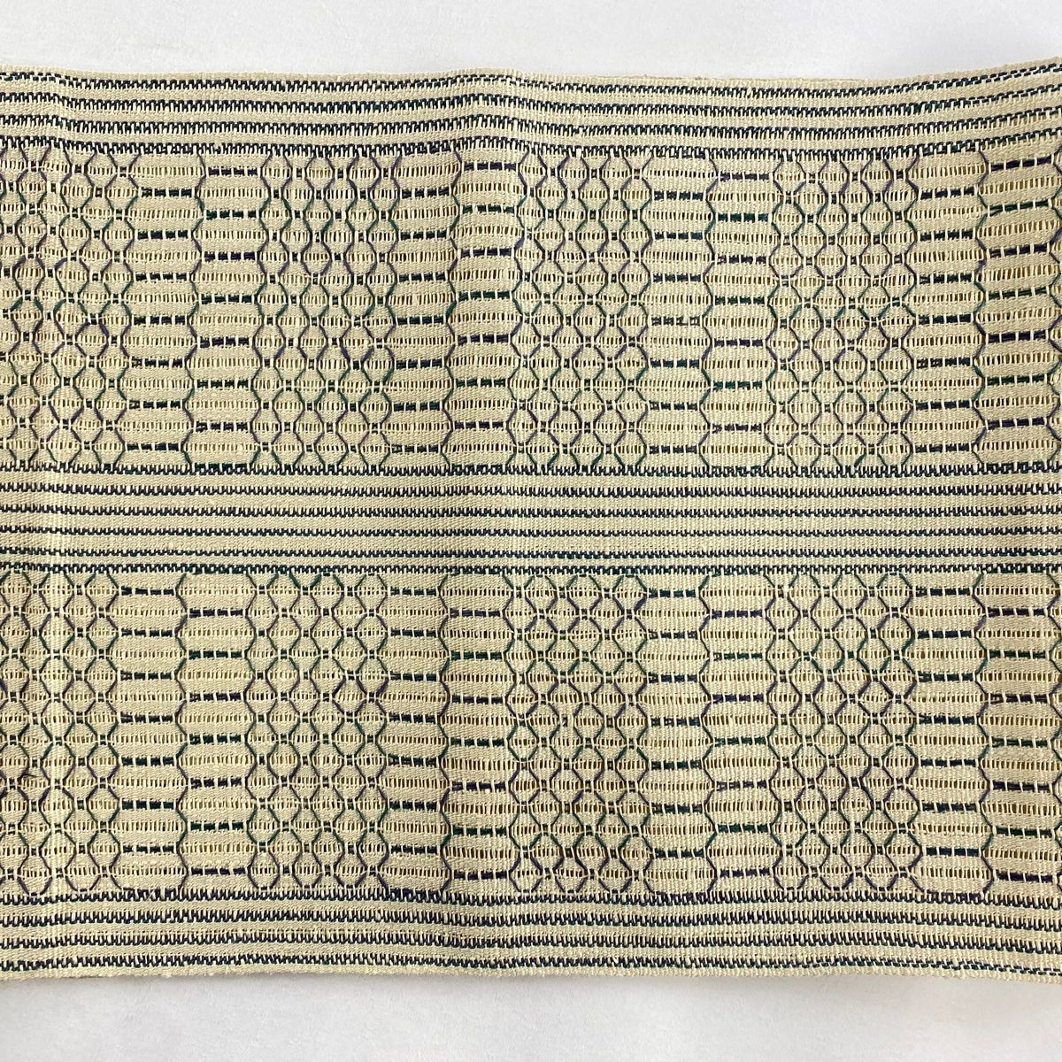 名古屋帯 秀品 松葉仕立て 八寸名古屋帯 縞 幾何学模様 ベージュ 正絹 WWW_NICORILABO_COM