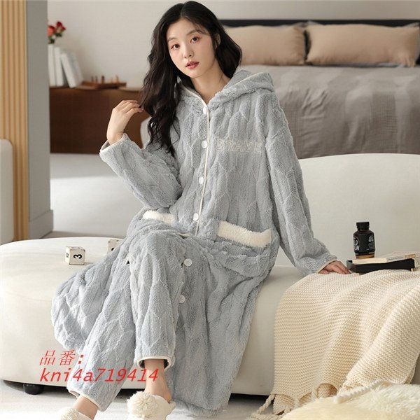 クマ柄 ペア パジャマ カップル ペア 部屋着 ルームウェア やわらか あったかい 長袖 前開き もこもこ 冬向き 韓国 裏起毛 レディース kni4a719414 WWW_NICORILABO_COM