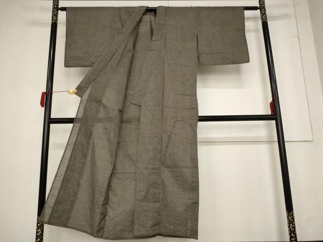 大島紬 身丈158.5cm 裄丈64.5cm M 袷 純泥染 背抜き やまと 証紙 幾何学模様 灰白 正絹 名品